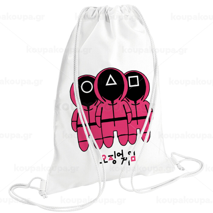 The squid game, Backpack pouch GYMBAG white (28x40cm)