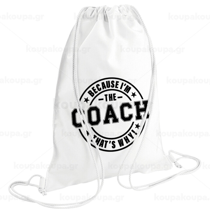 Because i'm the Coach, Backpack pouch GYMBAG white (28x40cm)