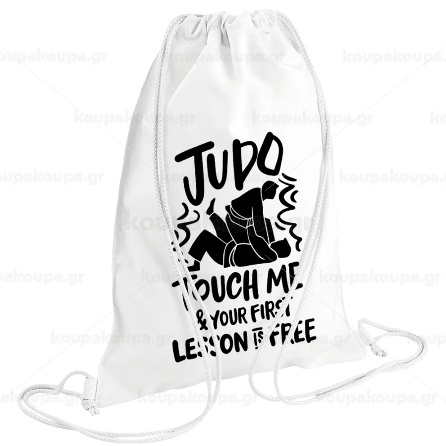 Judo Touch Me And Your First Lesson Is Free, Backpack pouch GYMBAG white (28x40cm)