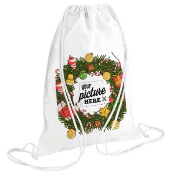 Sports backpack with dimensions 28x40cm. The drawstrings can be pulled to close the bag and then used as shoulder straps for carrying the bag.