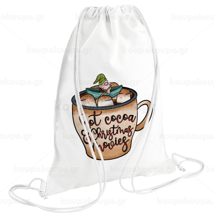 Hot Cocoa And Christmas Movies, Backpack pouch GYMBAG white (28x40cm)