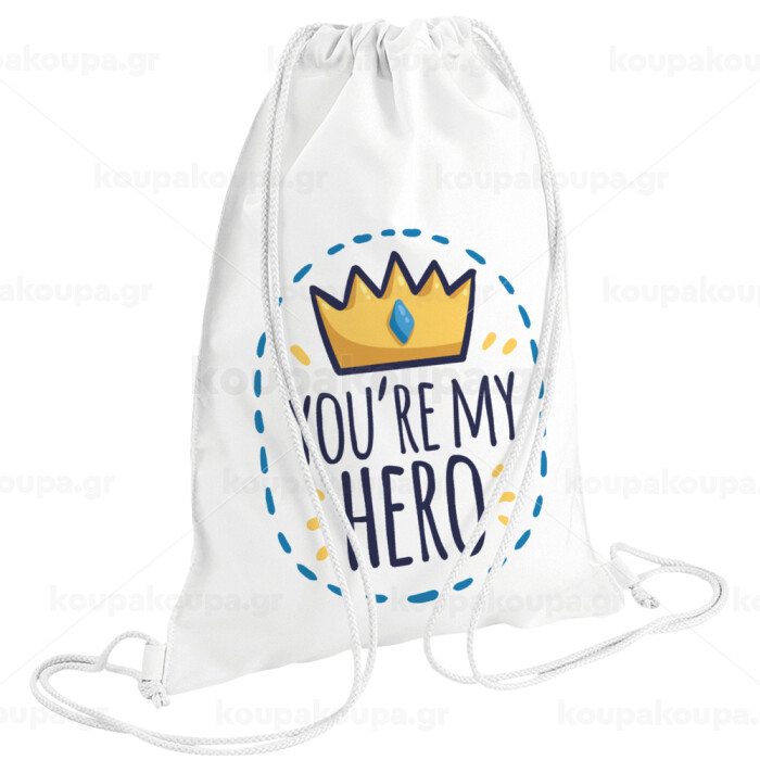 Dad, you are my hero!, Backpack pouch GYMBAG white (28x40cm)