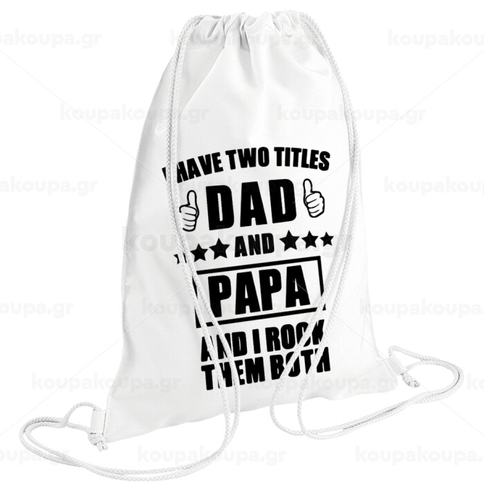 I have two title, DAD & PAPA, Backpack pouch GYMBAG white (28x40cm)