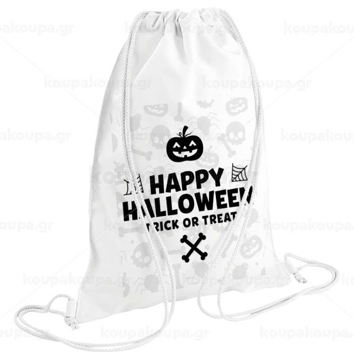 Happy Halloween pumpkin, Backpack pouch GYMBAG white (28x40cm)