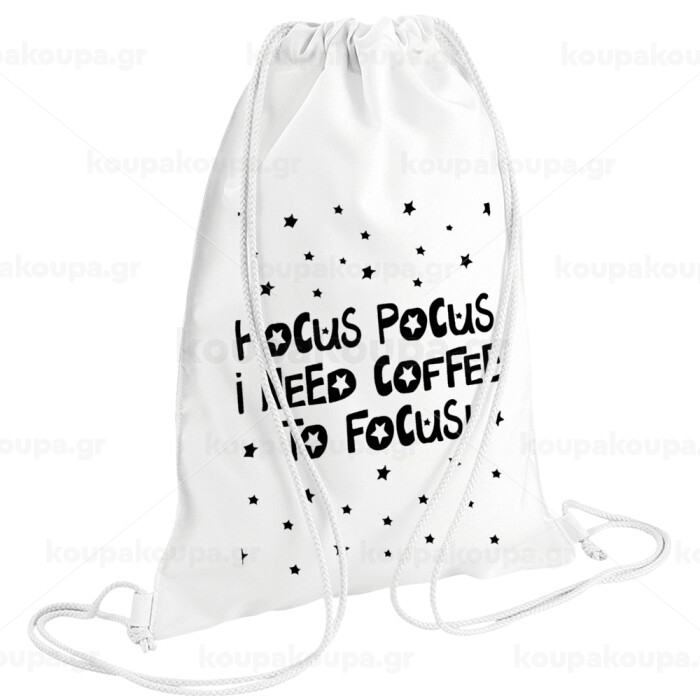 Hocus pocus i need coffee to focus - halloween, Backpack pouch GYMBAG white (28x40cm)
