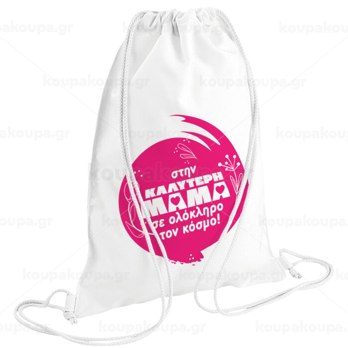 Στην καλύτερη μαμά του κόσμου!, Backpack pouch GYMBAG white (28x40cm)