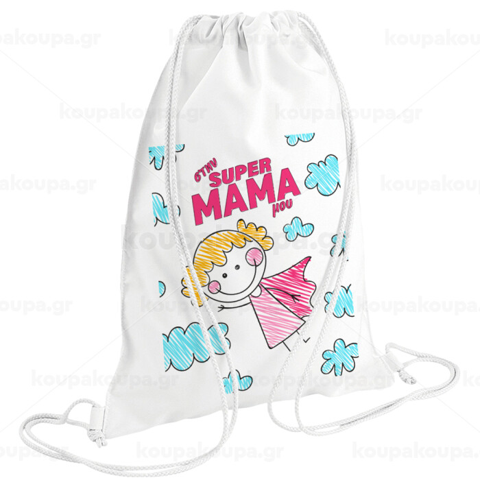 Στην SUPER μαμά μου, comic, Backpack pouch GYMBAG white (28x40cm)