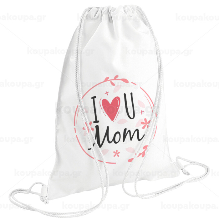 I Love you Mom pink, Backpack pouch GYMBAG white (28x40cm)