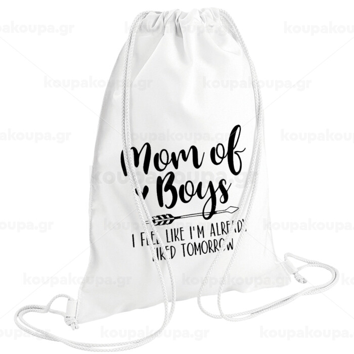 Mom of boys i feel like im already tired tomorrow, Backpack pouch GYMBAG white (28x40cm)
