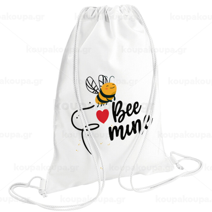Bee mine!!!, Backpack pouch GYMBAG white (28x40cm)