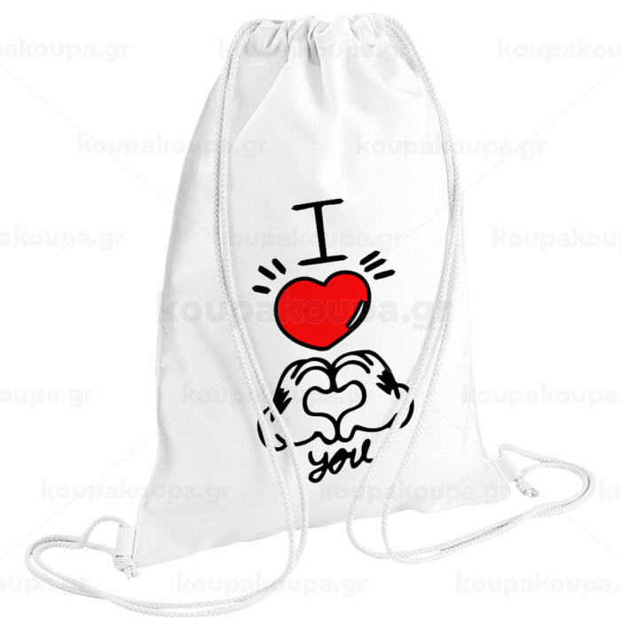 comics hands love, Backpack pouch GYMBAG white (28x40cm)