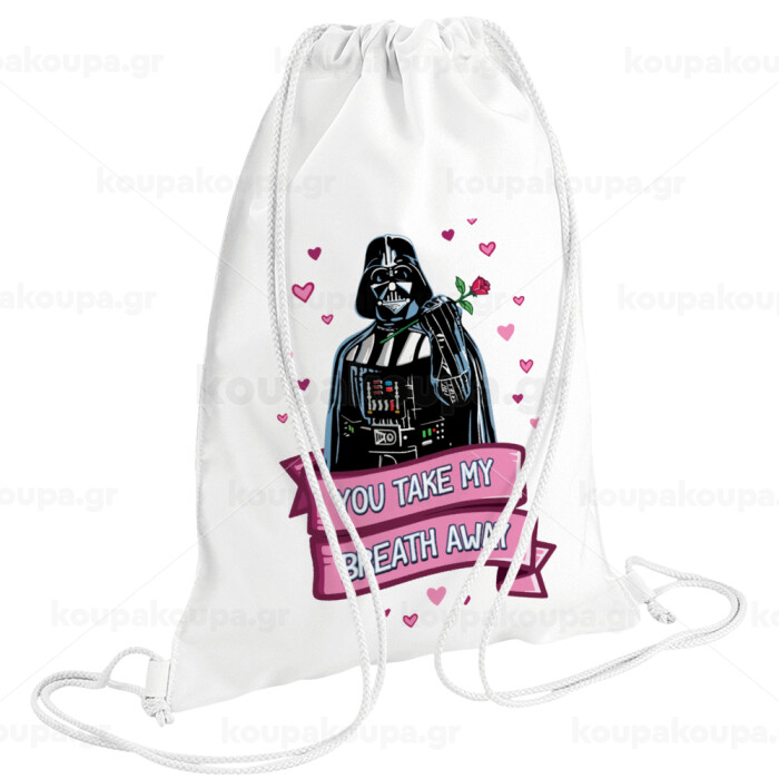 Darth Vader, you take my breath away, Backpack pouch GYMBAG white (28x40cm)