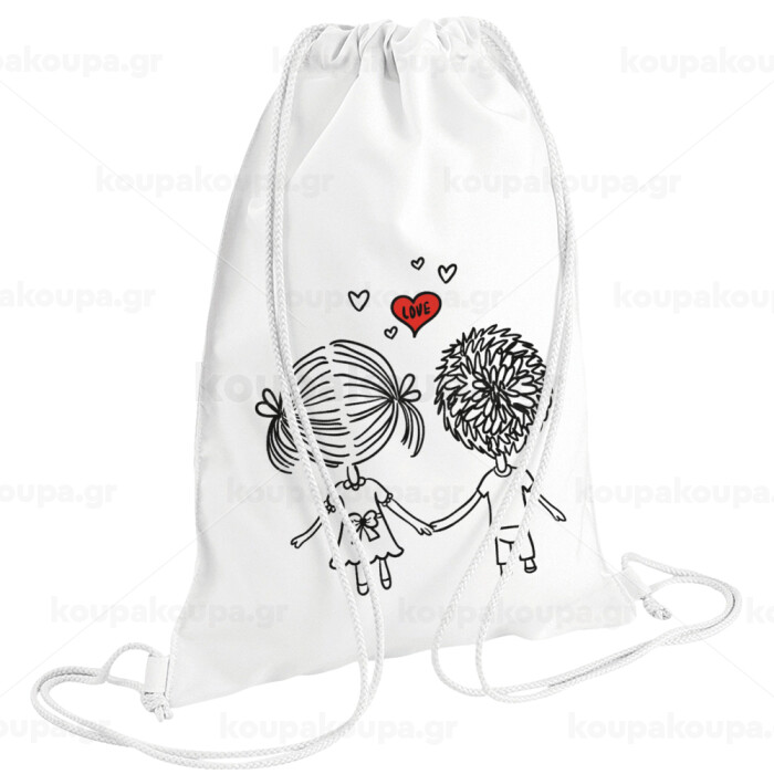 Hold my hand for ever, Backpack pouch GYMBAG white (28x40cm)