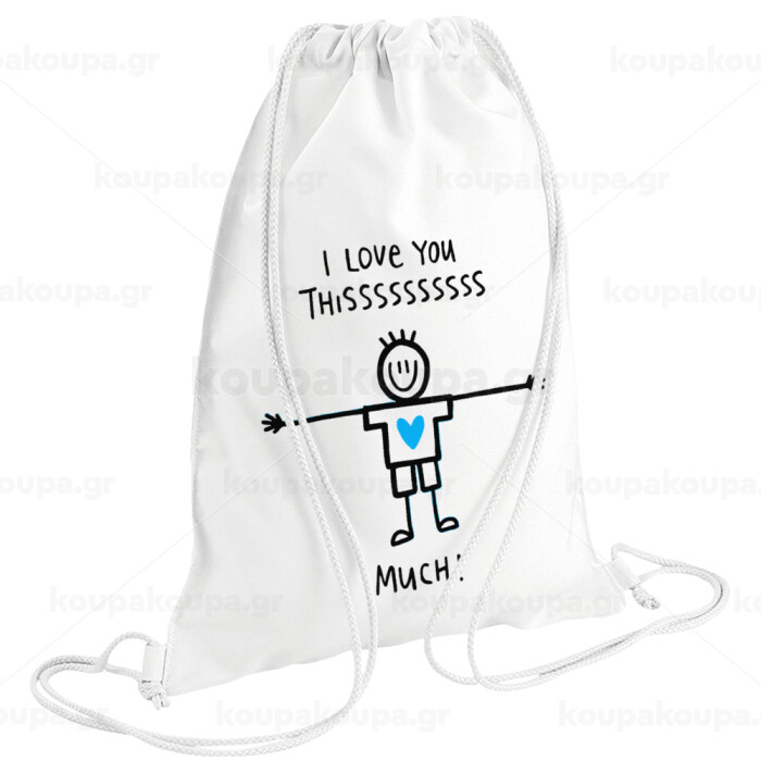 I Love you thissss much (boy)..., Backpack pouch GYMBAG white (28x40cm)