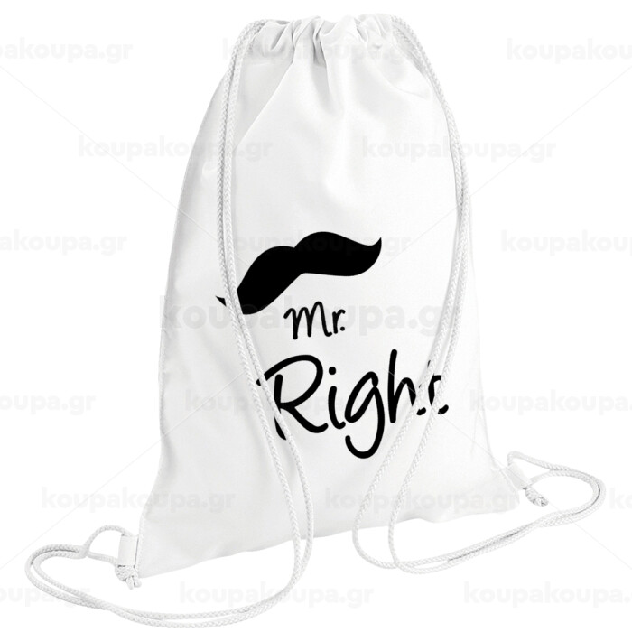 Mr right Mustache, Backpack pouch GYMBAG white (28x40cm)