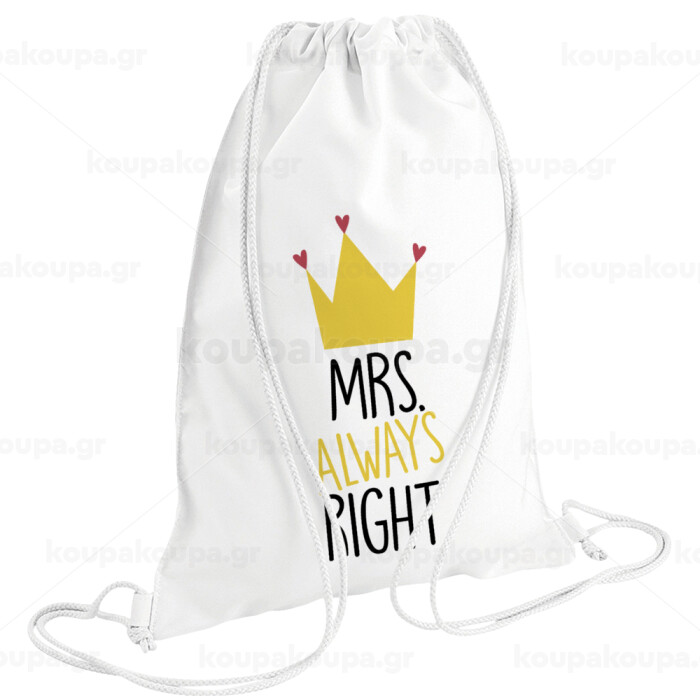 Mrs "Always" right, Backpack pouch GYMBAG white (28x40cm)