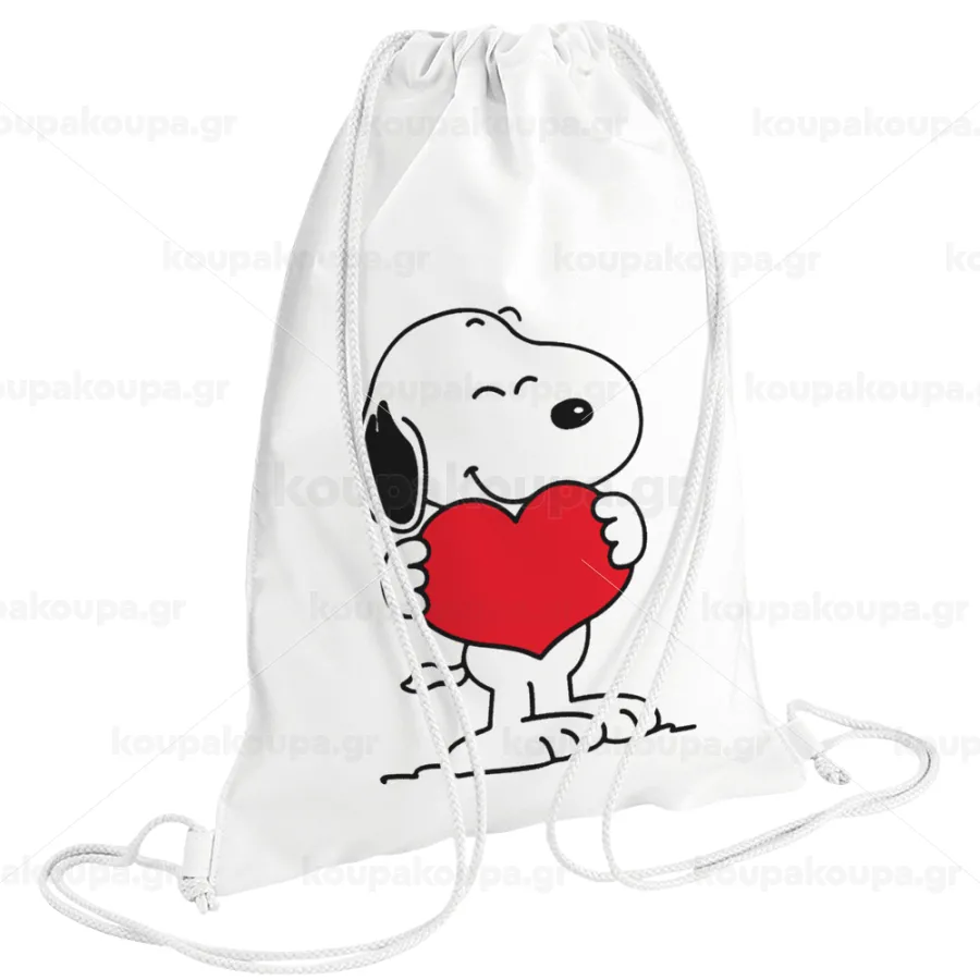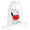 Snoopy takemy heart, Backpack pouch GYMBAG white (28x40cm)