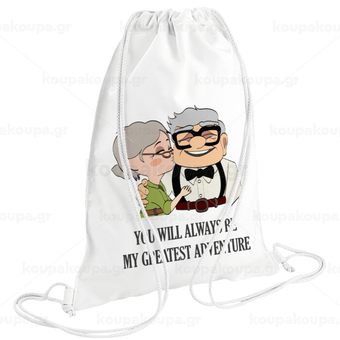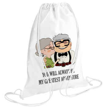 UP, YOU WILL ALWAYS BE MY GREATEST ADVENTURE, Backpack pouch GYMBAG white (28x40cm)