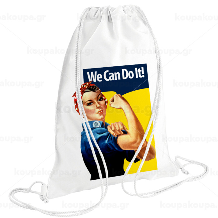 Rosie we can do it!, Backpack pouch GYMBAG white (28x40cm)