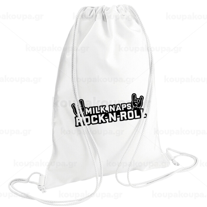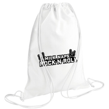 Milk, Naps, Rock N Roll, Backpack pouch GYMBAG white (28x40cm)