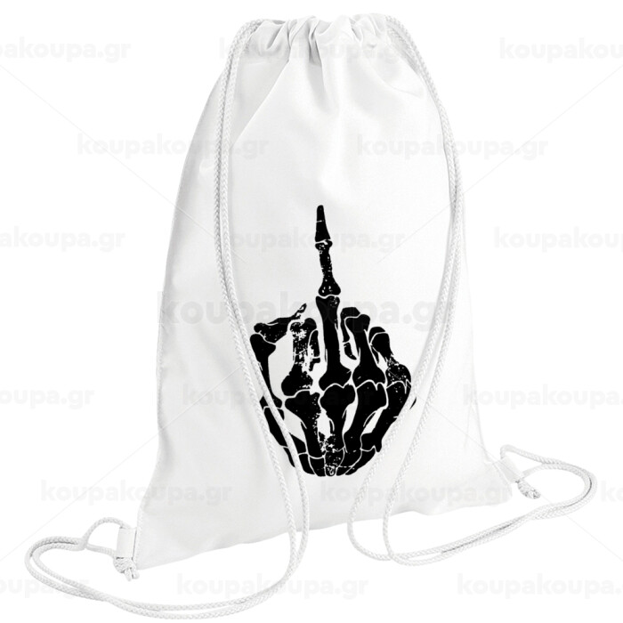 Middle finger, Backpack pouch GYMBAG white (28x40cm)