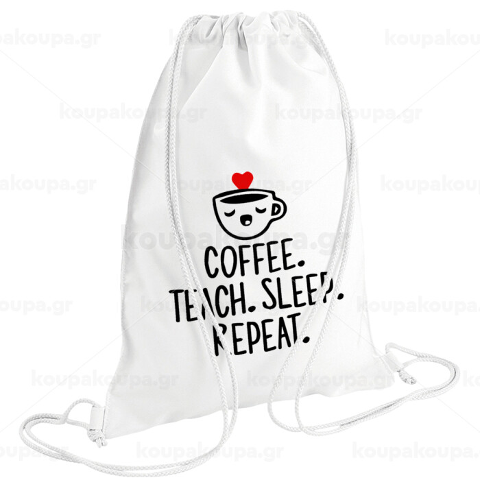 Coffee Teach Sleep Repeat, Backpack pouch GYMBAG white (28x40cm)