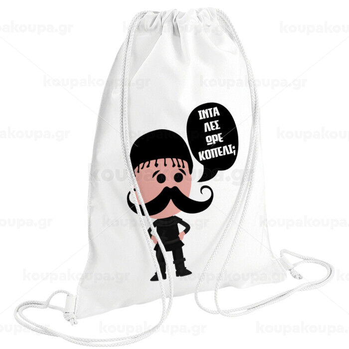 Κρητικός "Ίντα λες ωρέ κοπέλι", Backpack pouch GYMBAG white (28x40cm)