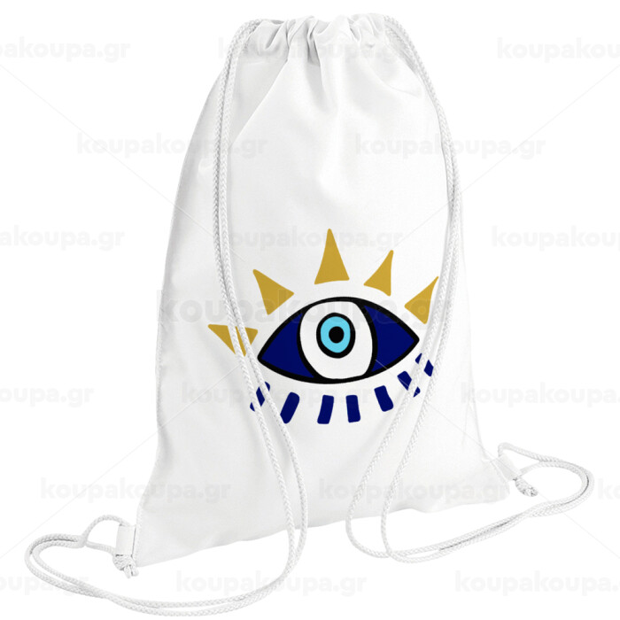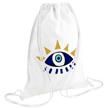 blue evil eye, Backpack pouch GYMBAG white (28x40cm)