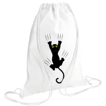 cat grabbing, Backpack pouch GYMBAG white (28x40cm)