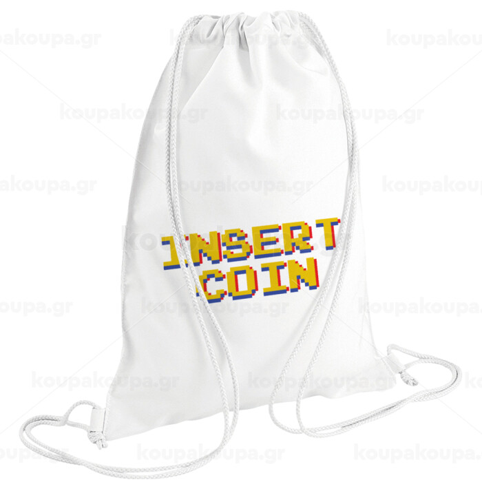 Insert coin!!!, Backpack pouch GYMBAG white (28x40cm)