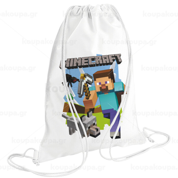 Minecraft Alex, Backpack pouch GYMBAG white (28x40cm)