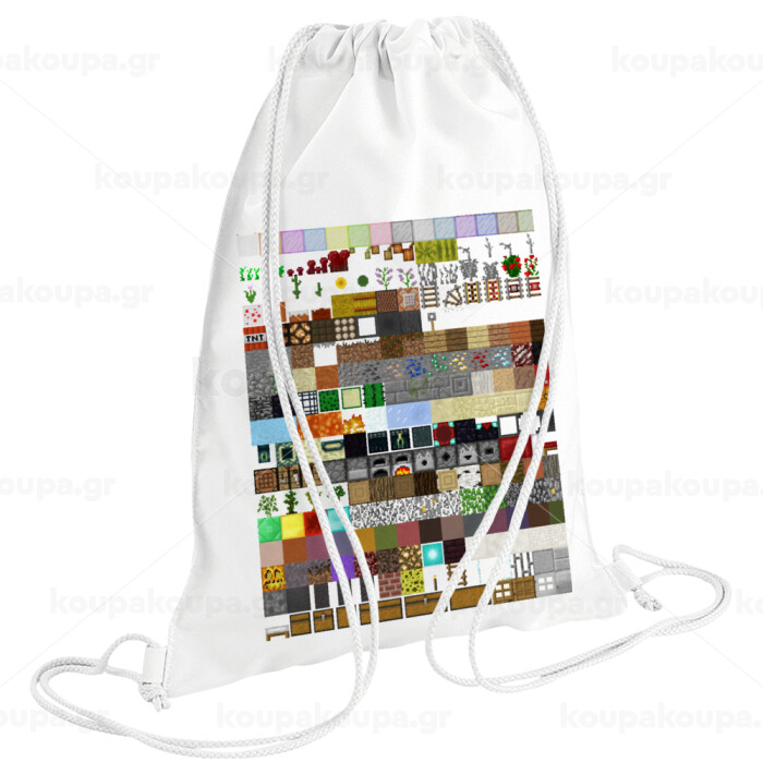 Minecraft blocks, Backpack pouch GYMBAG white (28x40cm)