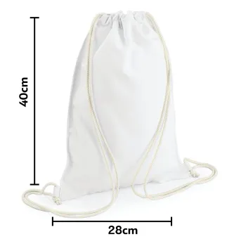 Sports backpack with dimensions 28x40cm. The drawstrings can be pulled to close the bag and then used as shoulder straps for carrying the bag.