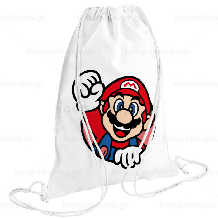 Super mario win, Backpack pouch GYMBAG white (28x40cm)