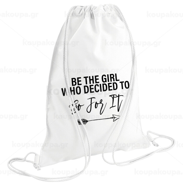 Be the girl who decided to, Backpack pouch GYMBAG white (28x40cm)