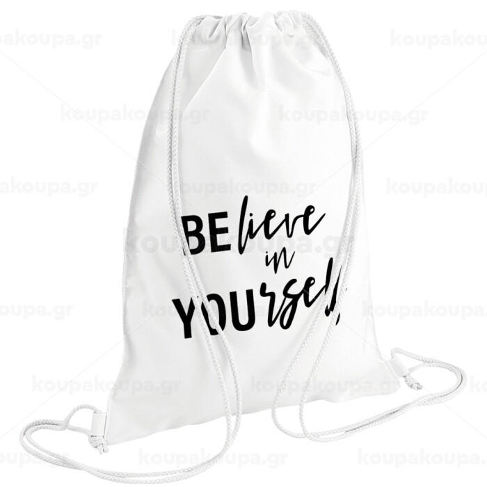Believe in your self, Backpack pouch GYMBAG white (28x40cm)