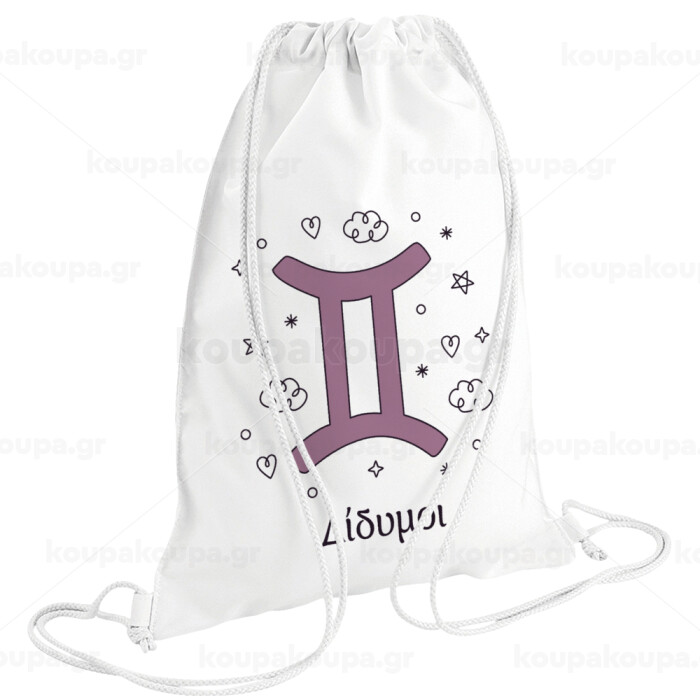 Ζώδια Δίδυμοι, Backpack pouch GYMBAG white (28x40cm)