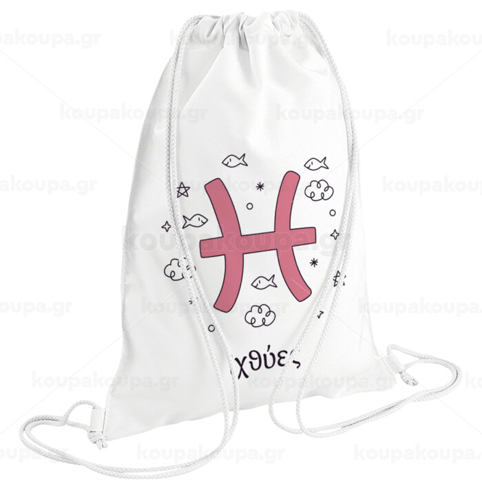 Ζώδια Ιχθύες, Backpack pouch GYMBAG white (28x40cm)