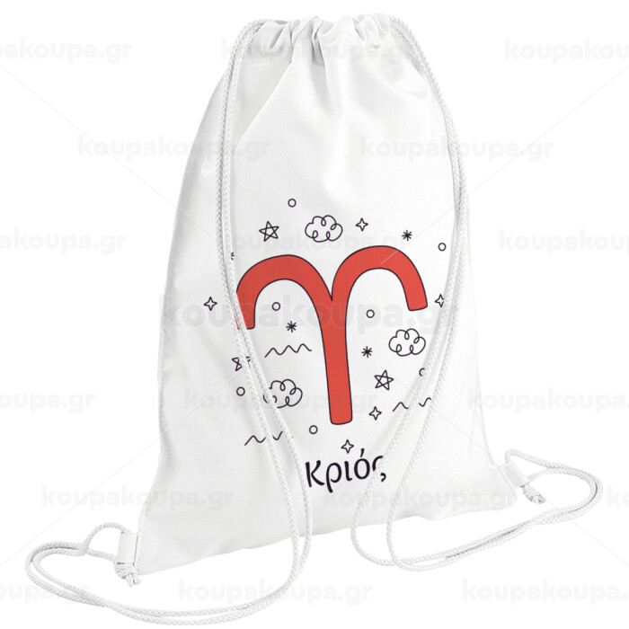 Ζώδια Κριός, Backpack pouch GYMBAG white (28x40cm)