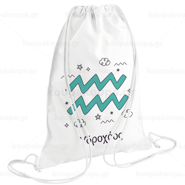 Ζώδια Υδροχόος, Backpack pouch GYMBAG white (28x40cm)