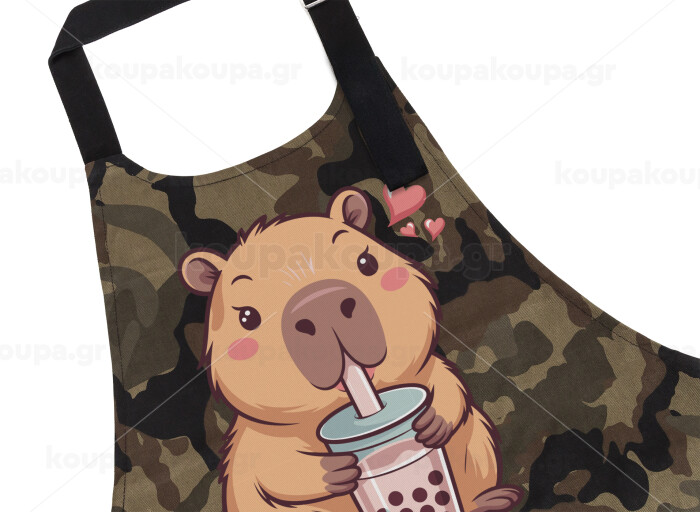 Capybara Bubble Tea, Ποδιά Σεφ με τσέπες, Βαμβακερή, Camouflage (ΕΝΗΛΙΚΩΝ, 100% COTTON)