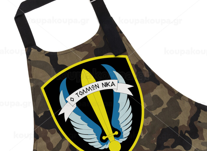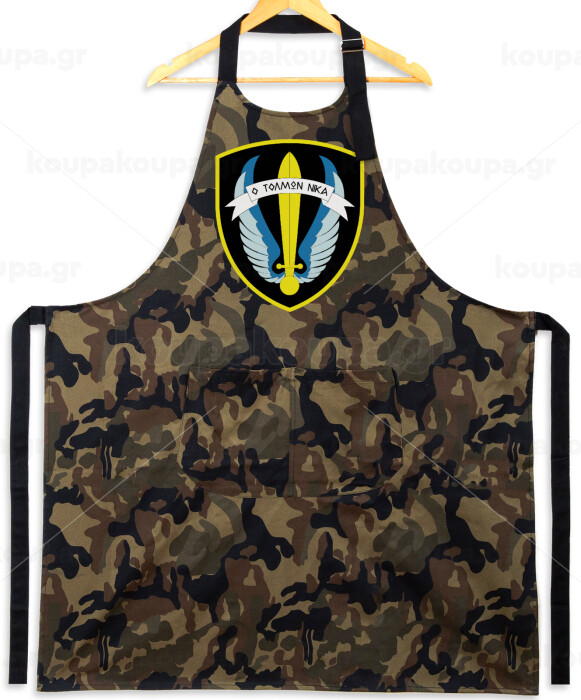 Έμβλημα Μονάδων Καταδρομών Ο Τολμων Νικα - Λοκ, Ποδιά Σεφ με τσέπες, Βαμβακερή, Camouflage (ΕΝΗΛΙΚΩΝ, 100% COTTON)