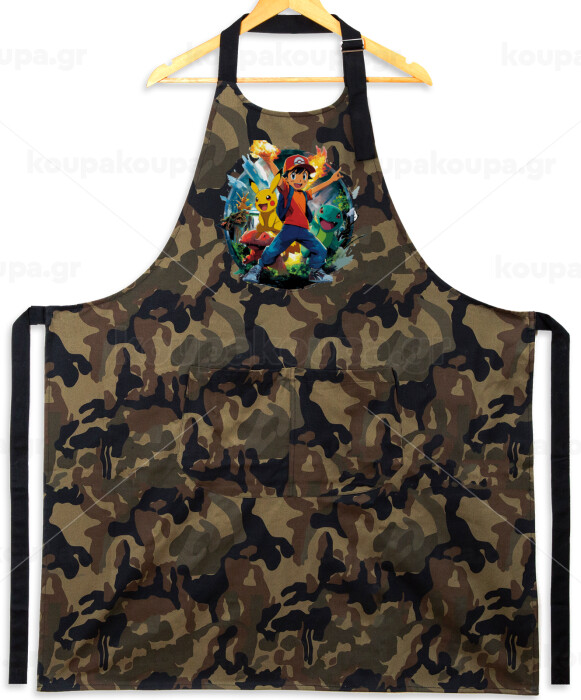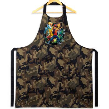 Ash Ketchum & Pikachu, Ποδιά Σεφ με τσέπες, Βαμβακερή, Camouflage (ΕΝΗΛΙΚΩΝ, 100% COTTON)