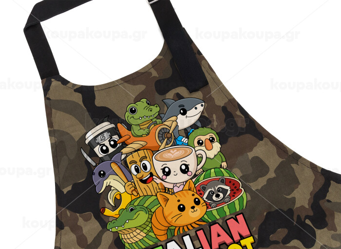 Fabric 100% cotton [280 gsm]. Machine wash at 60°. Adjustable neck with metal clasp. Dimension Large front pocket with two compartments. Pocket: Length 20 cm - Width 31.5 cm. Apron Dimension: Length 90 cm - Width 76 cm.
