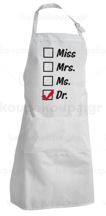 Miss, Mrs, Ms, DR, Adult Chef Apron (with sliders and 2 pockets)