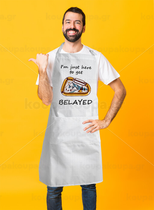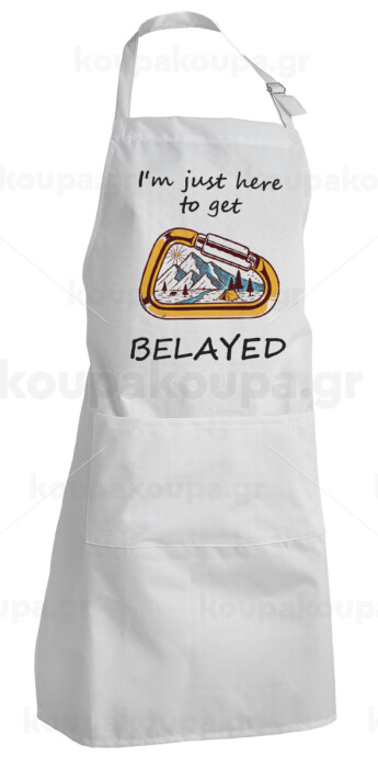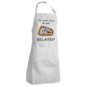 I'm just here to get Belayed, Adult Chef Apron (with sliders and 2 pockets)