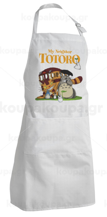 Totoro and Cat, Adult Chef Apron (with sliders and 2 pockets)