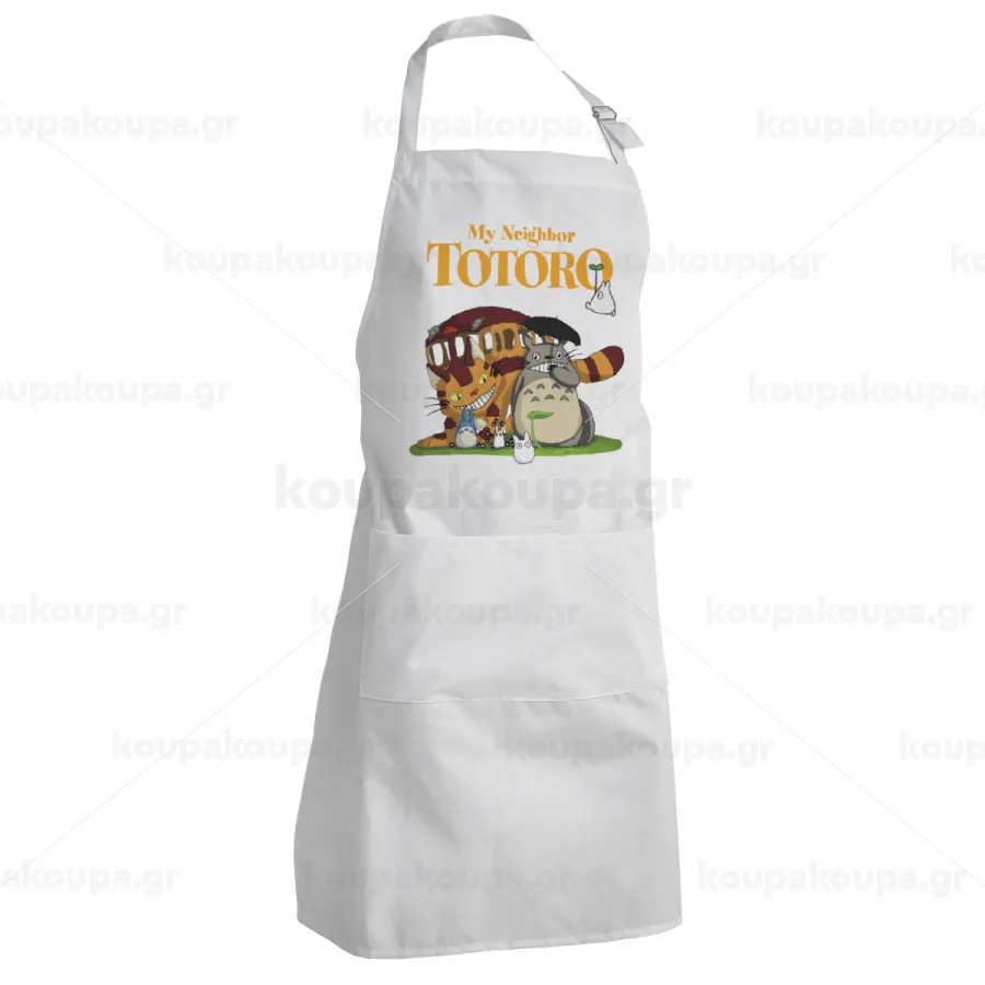 Totoro and Cat, Adult Chef Apron (with sliders and 2 pockets)