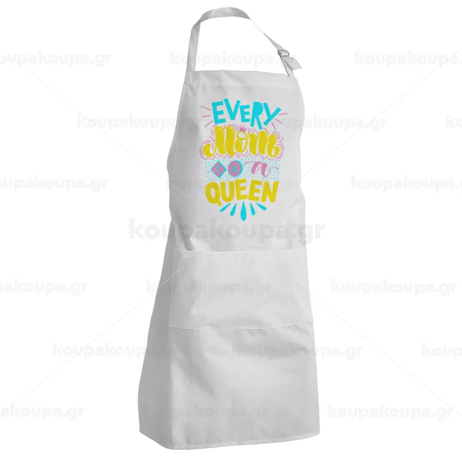 Every mom is a Queen, Adult Chef Apron (with sliders and 2 pockets)