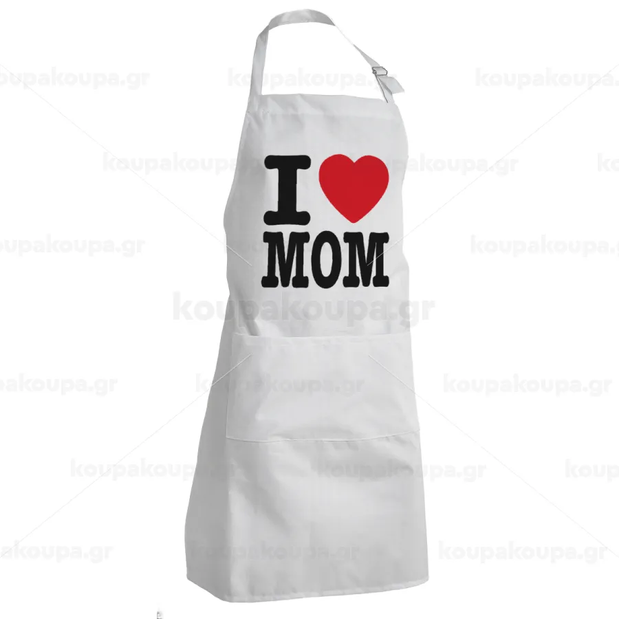 I LOVE MOM, Adult Chef Apron (with sliders and 2 pockets)